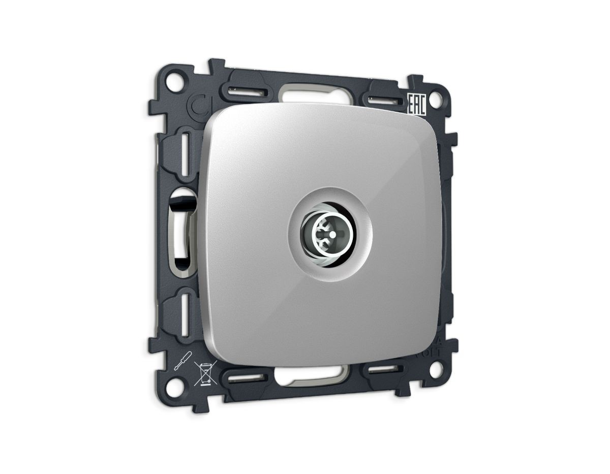 Комплект механизма TV розетки Ambrella Volt оконечной экранированной 5-1000MHz 3dB OMEGA MO413005 Серебро глянец QUANT (OP4130, VM199)✖Добавить к сравнениюПерейти к сравнению