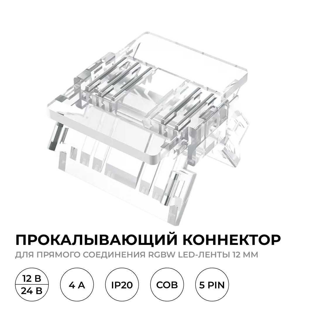 Коннектор прокалывающий 5 pin для соединения RGBW LED ленты 12мм, тип COB Apeyron 09-161✖Добавить к сравнениюПерейти к сравнению