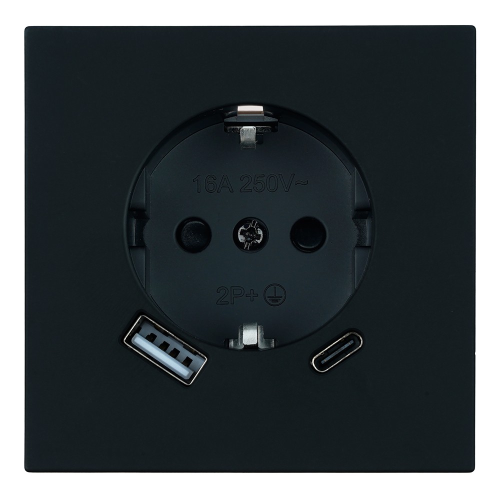 Розетка 1-местная з/ш с/з 16А + USB + Type C (механизм) Stekker Мия 250В 20W RST16-3119-05 черный бархат 50452✖Добавить к сравнениюПерейти к сравнению