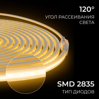 Купить в 1 кликЗаказатьКомплект светодиодной ленты Apeyron 220В 10Вт/м, 600лм/м, 3000К (т/б), SMD2835, 120д/м, 13,5х7мм, 5м, IP65, с аксесcуарами (сетевой шнур, заглушка - 1шт, крепеж - 5шт) 10-140 Артикул: