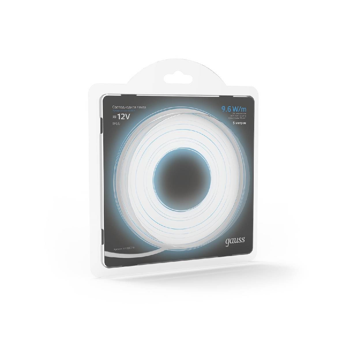 Светодиодная влагозащищенная лента Gauss 9,6W/m 120LED/m 2835SMD холодный белый 5M 311000310✖Добавить к сравнениюПерейти к сравнению