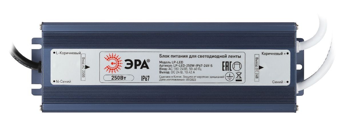 Блок питания Эра 250Вт DC24В 10.42A IP67 LP-LED-250W-IP67-24V-S Б0061148✖Добавить к сравнениюПерейти к сравнению