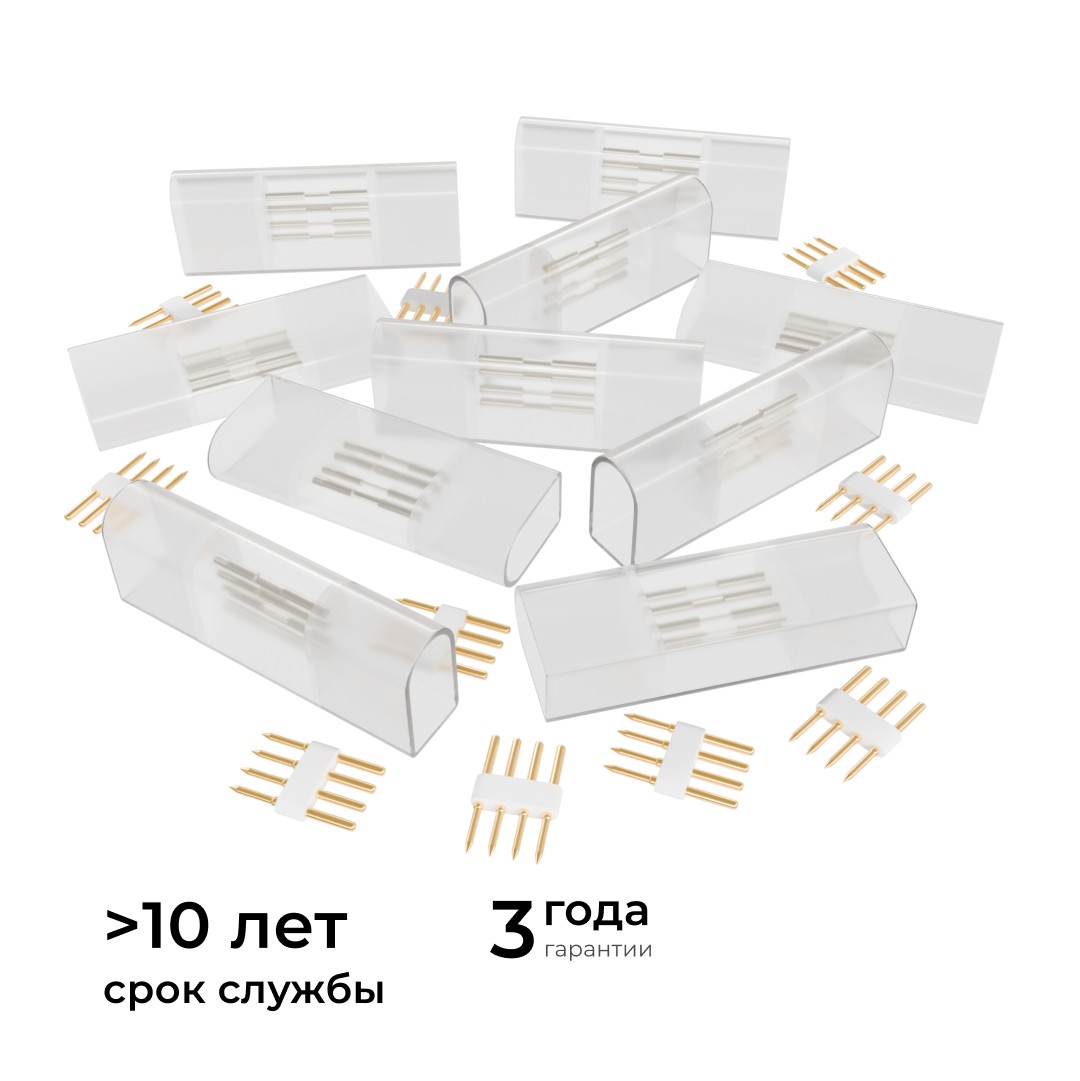 Комплект (10шт) коннекторов для прямого соединения светодиодного неона Apeyron 17-49 RGB 220В 09-152✖Добавить к сравнениюПерейти к сравнению