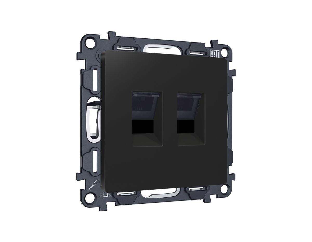 Комплект механизма компьютерной двойной розетки RJ-45 Ambrella Volt MA812110 (8P8C) CAT6 с автоматической защитной шторкой Alfa Черный матовый Quant✖Добавить к сравнениюПерейти к сравнению