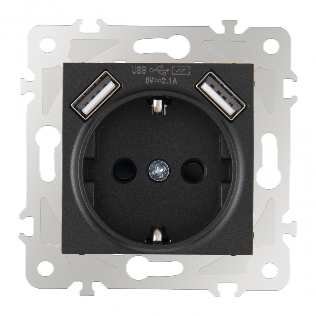 Розетка с заземлением, шторками + USB Arte Milano 203.47-1.black✖Добавить к сравнениюПерейти к сравнению