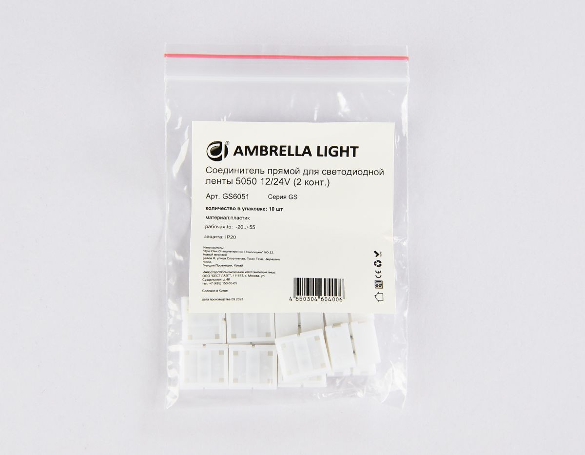 Соединитель прямой для светодиодной ленты 5050 12/24V (2 конт.) GS6051 (10шт) Ambrella Light Illumination GS6051✖Добавить к сравнениюПерейти к сравнению