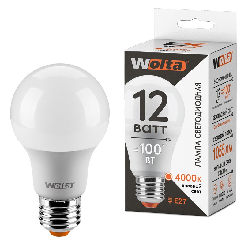 Светодиодная лампа WOLTA LX 12Вт 4000К Е27 груша матовая 30S60BL12E27✖Добавить к сравнениюПерейти к сравнению