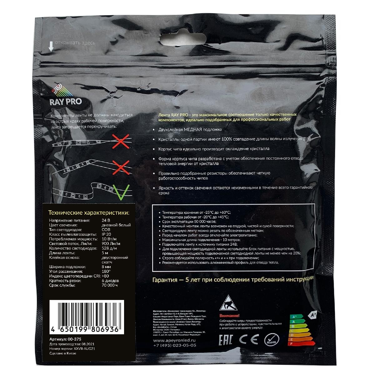 Светодиодная лента Apeyron 24В 10Вт/м COB, 528д/м IP20 900Лм/м 5м 4000К 00-375✖Добавить к сравнениюПерейти к сравнению
