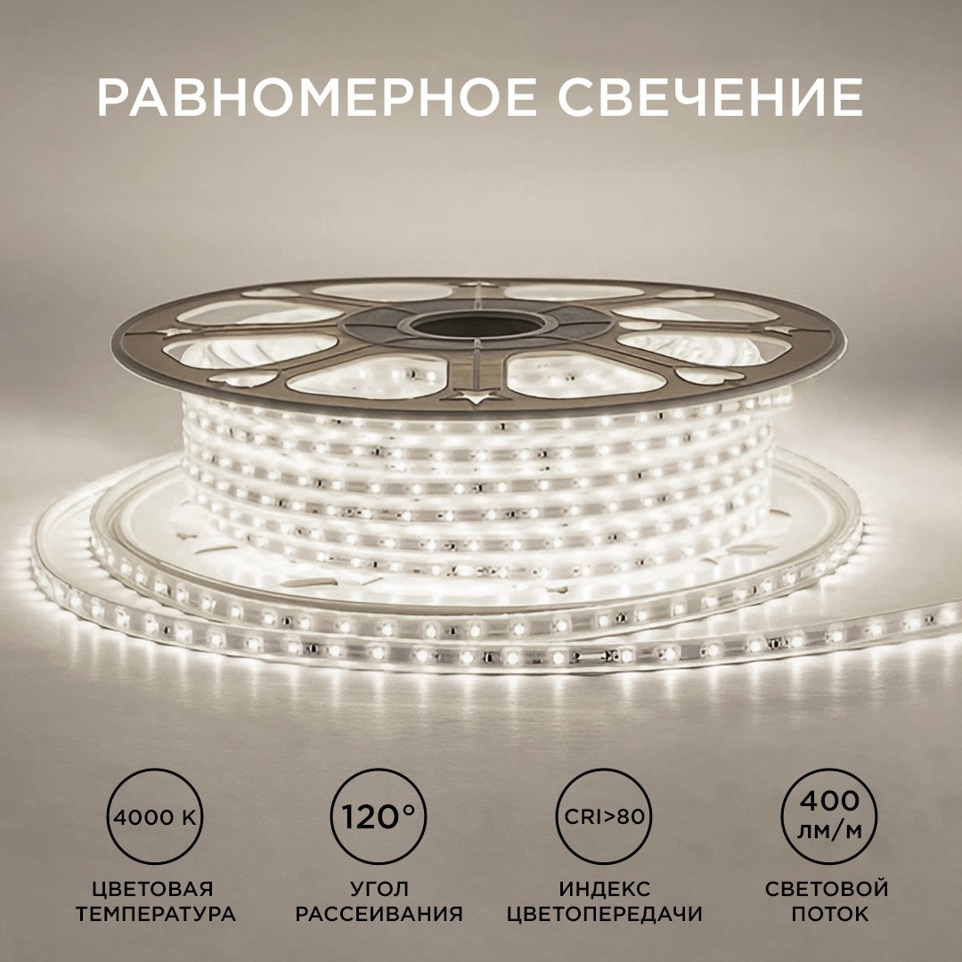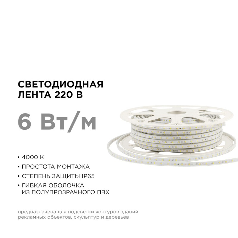 Светодиодная лента Apeyron Стандарт 220В 2835 6Вт/м 4000К 50м IP65 17-43✖Добавить к сравнениюПерейти к сравнению