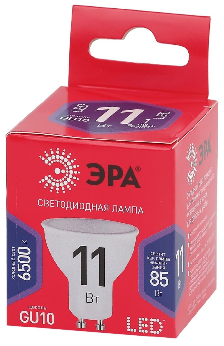 Лампа светодиодная Эра GU10 11W 6500K LED MR16-11W-865-GU10 R Б0045346✖Добавить к сравнениюПерейти к сравнению