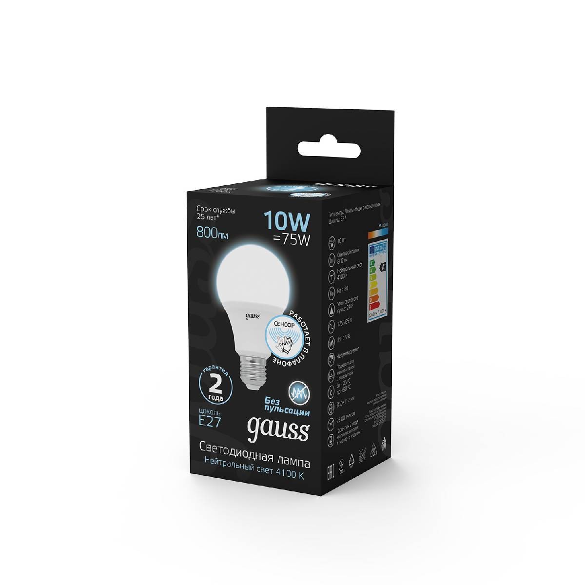 Лампа светодиодная сенсорная Gauss E27 10W 4100K матовая 102502210-M✖Добавить к сравнениюПерейти к сравнению