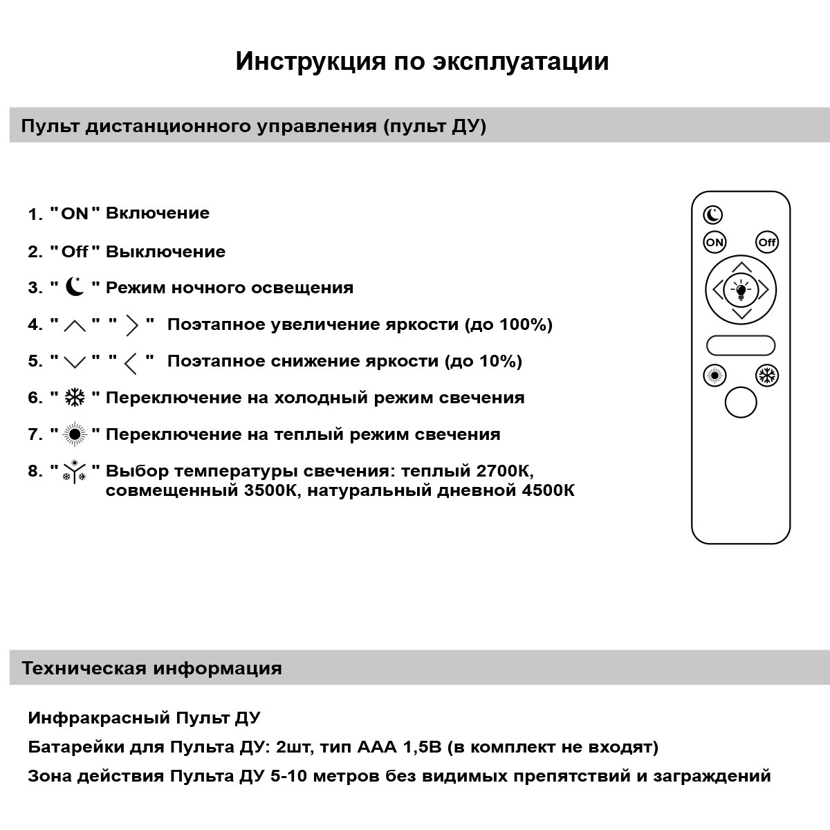 Тип управления | Пульт ДУ |