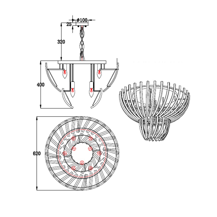 Направление абажуров/плафонов | Вниз |