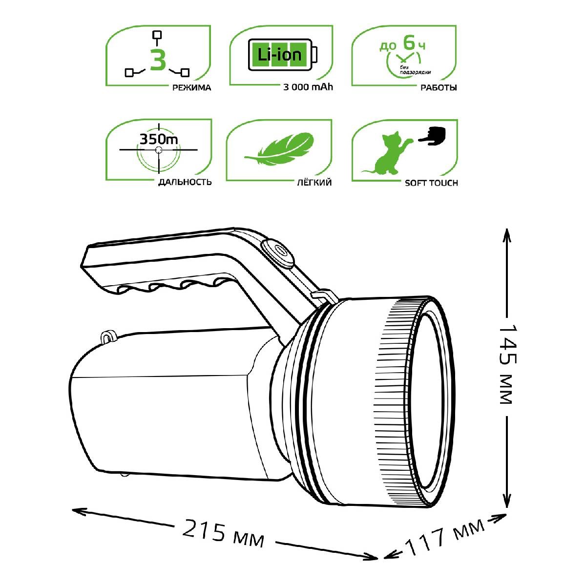 Прожекторный светодиодный фонарь Gauss аккумуляторный 215х145 200 лм GF601✖Добавить к сравнениюПерейти к сравнению
