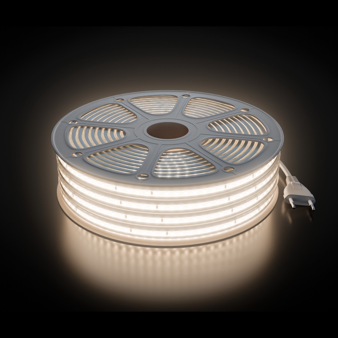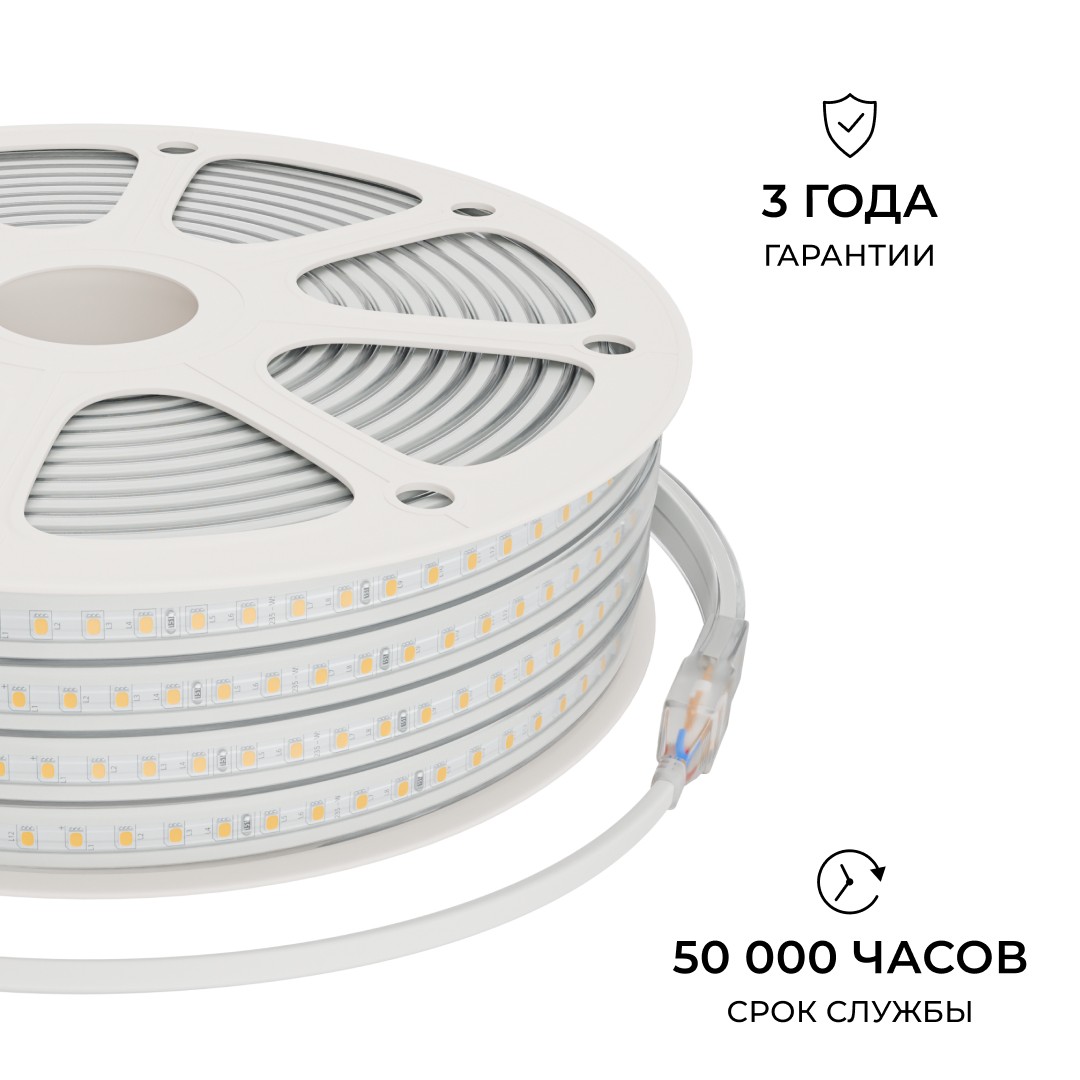 Комплект светодиодной ленты 220В 10Вт/м, 600лм/м, 4000К (д/б), SMD2835, 120д/м, 15м, IP65 10-144 (сетевой шнур, заглушка - 1шт, крепеж - 15шт)✖Добавить к сравнениюПерейти к сравнению