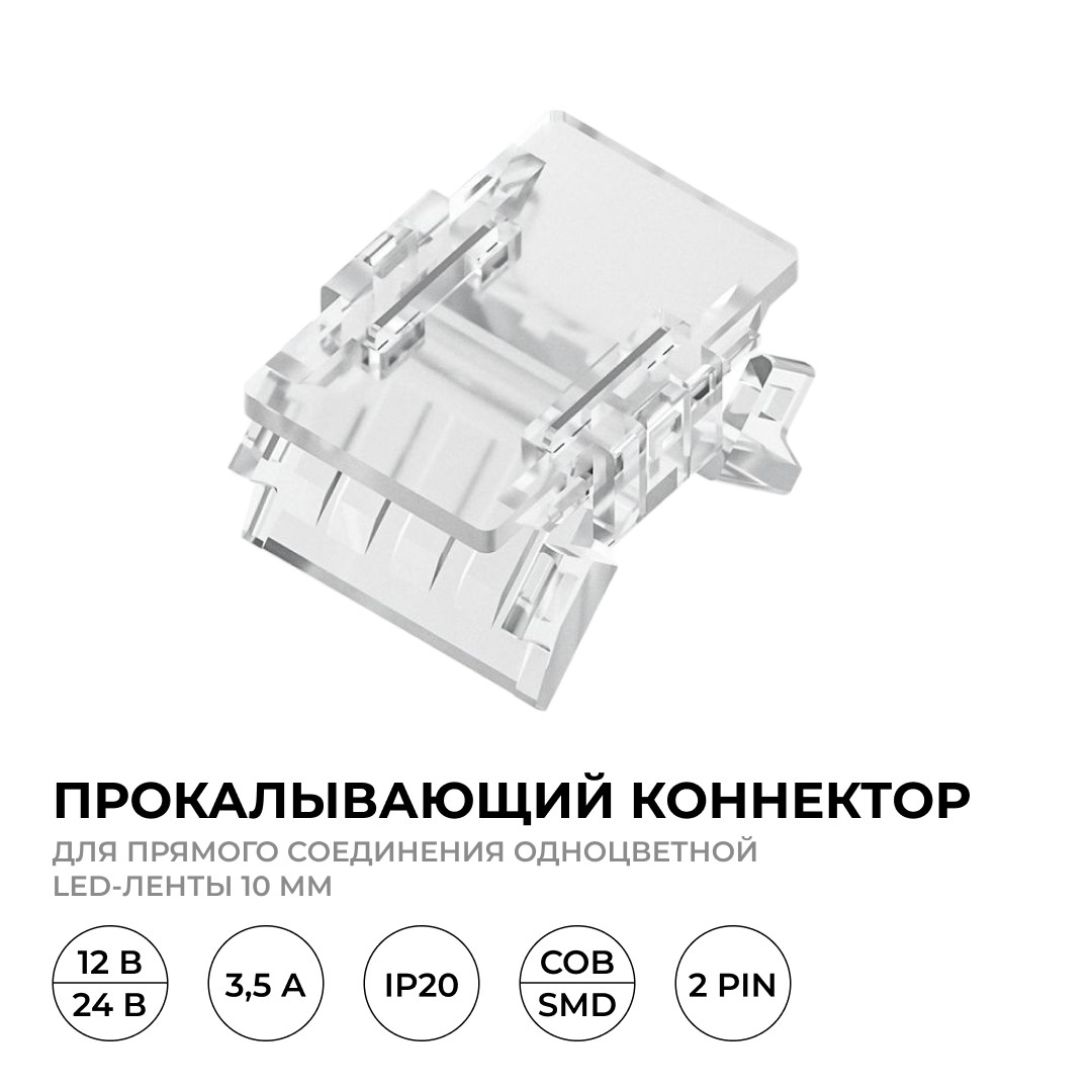 Коннектор прокалывающий для линейного соединения, 2 pin, для одноцветной LED ленты 10 ммб Apeyron 09-166✖Добавить к сравнениюПерейти к сравнению