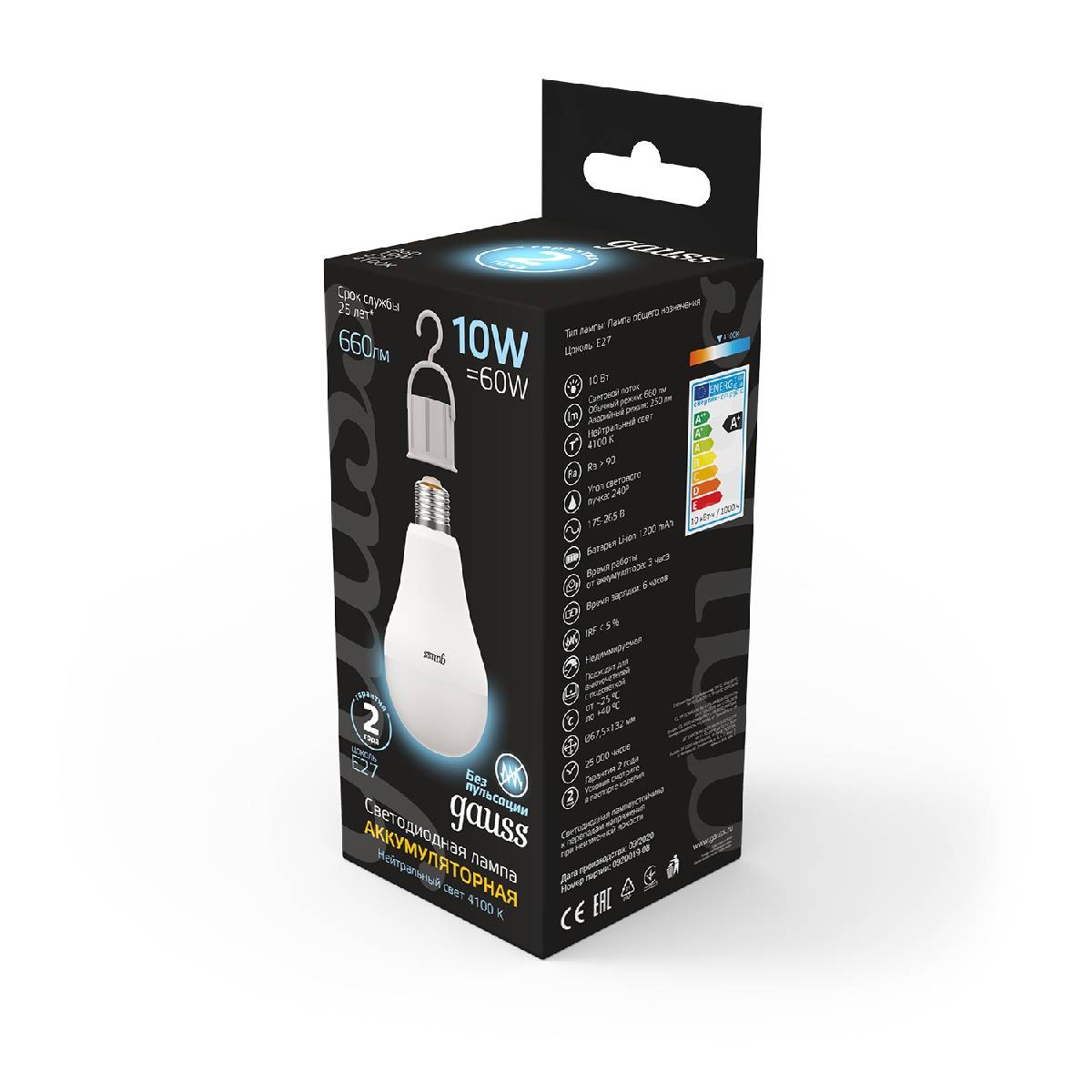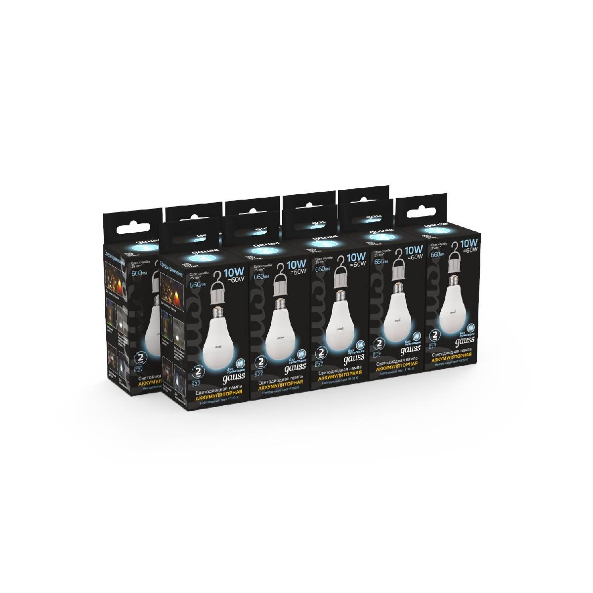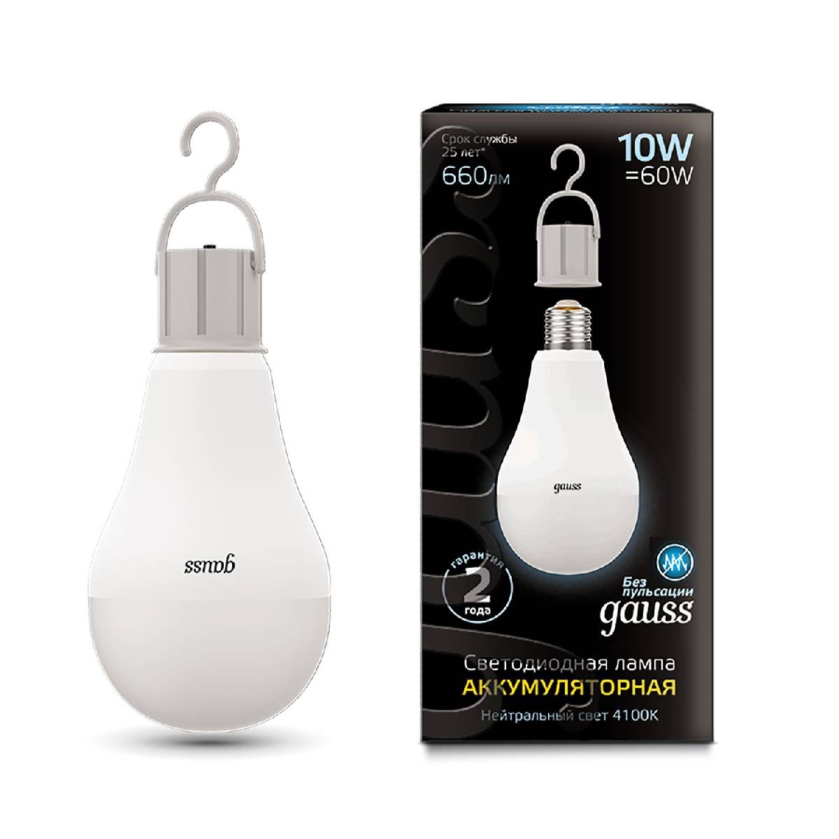 Лампа светодиодная аккумуляторная Gauss E27 10W 4100K матовая 102402200✖Добавить к сравнениюПерейти к сравнению