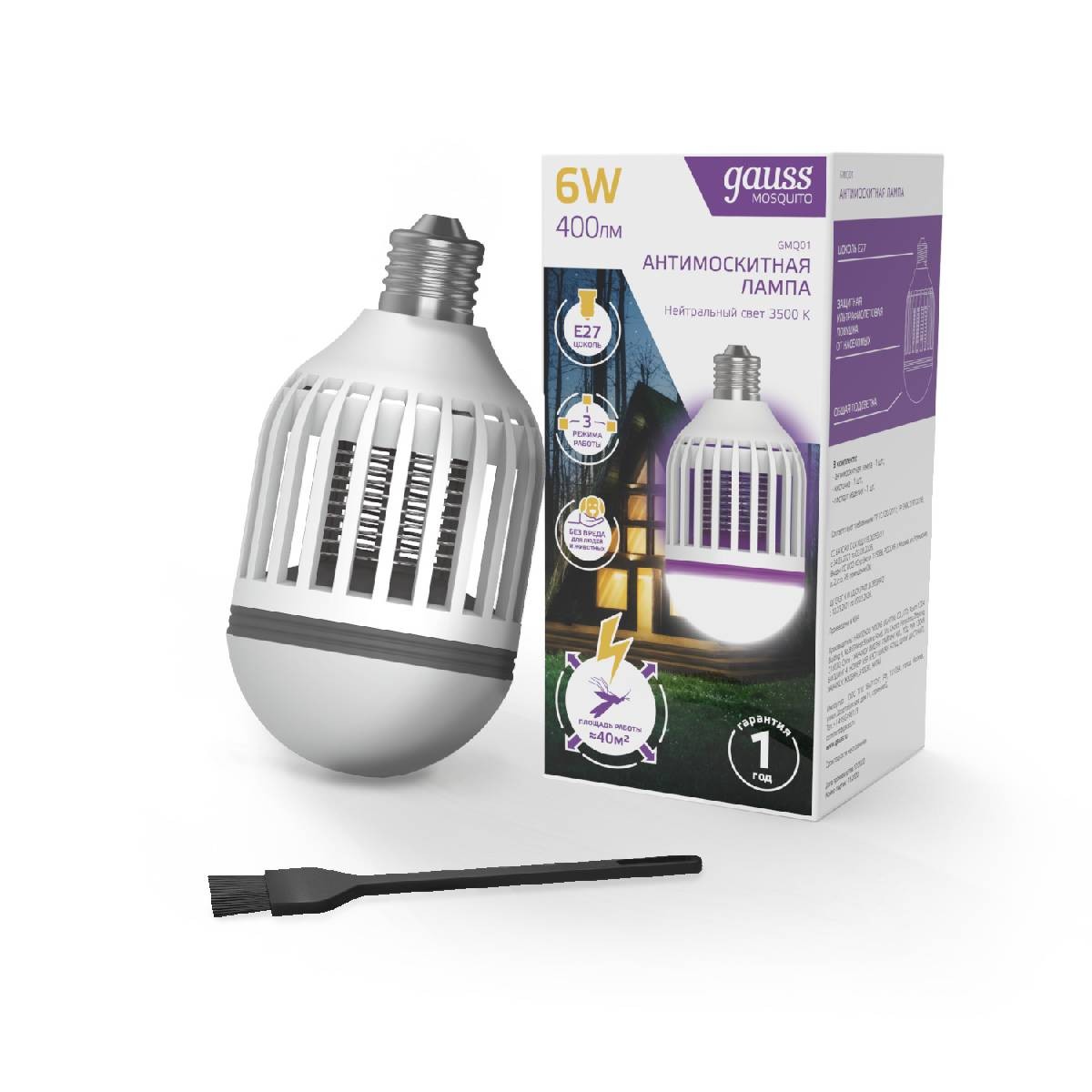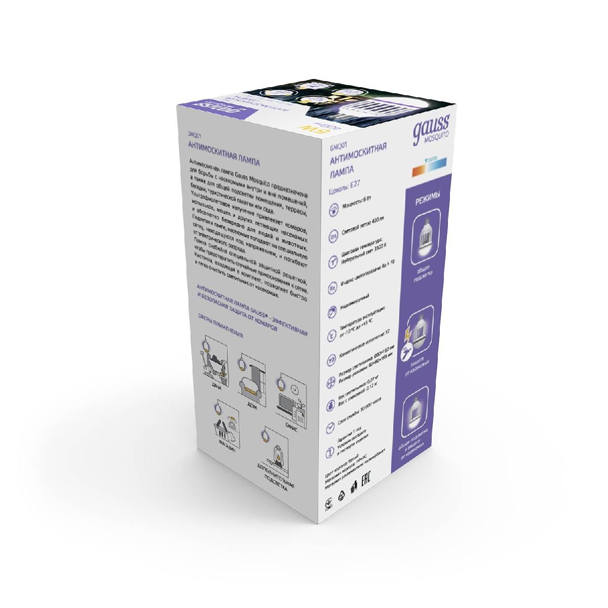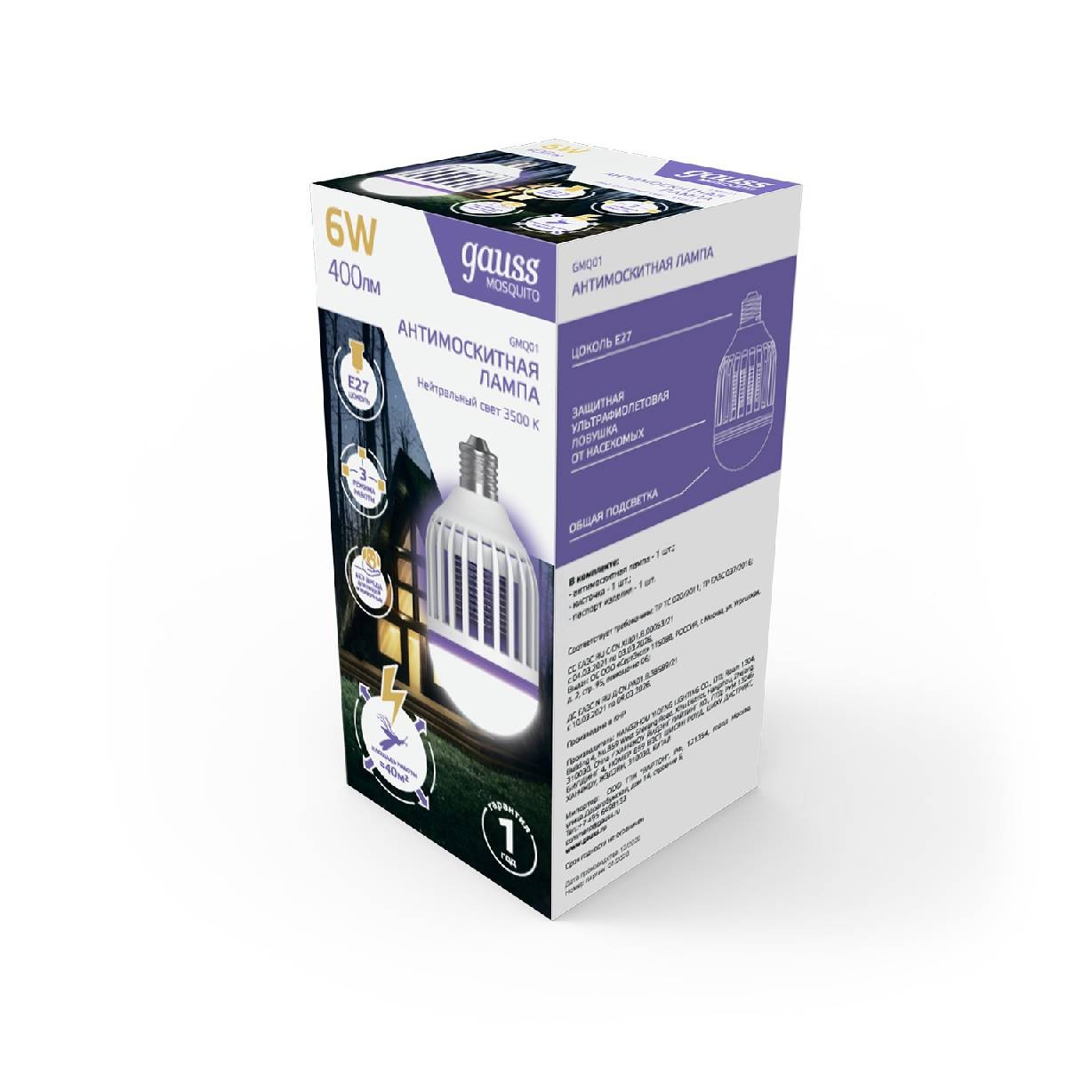 Лампа светодиодная антимоскитная Gauss E27 6W 3500K белая GMQ01✖Добавить к сравнениюПерейти к сравнению