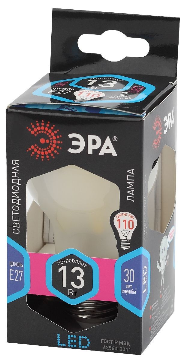 Лампа светодиодная Эра E27 13W 4000K F-LED A60-13W-840-E27 frost Б0044092✖Добавить к сравнениюПерейти к сравнению