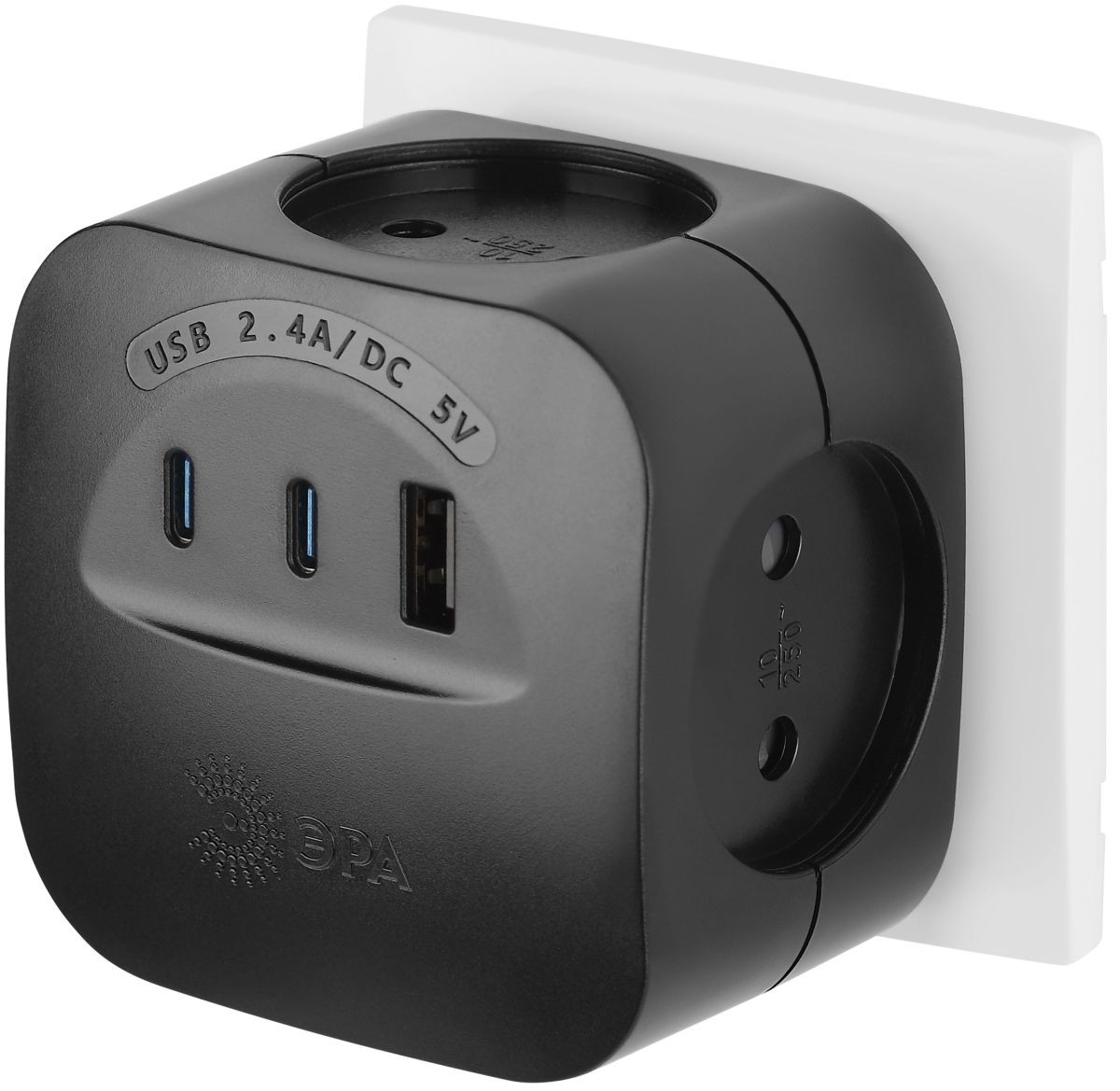 Разветвитель электрический ЭРА SP-4-3USBAC-B на 4 розетки + 3 USB A+C со шторками 10А черный Б0069084✖Добавить к сравнениюПерейти к сравнению