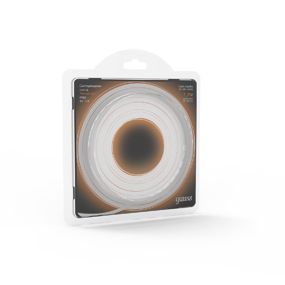 Светодиодная влагозащищенная лента Gauss 7,2W/m 30LED/m 5050SMD теплый белый 5M 311000107✖Добавить к сравнениюПерейти к сравнению