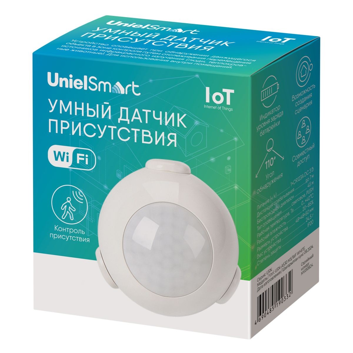 Умный датчик присутствия Wi-Fi. на батарейке Uniel UL-00011707 USN-A530 MS/WF WHITE✖Добавить к сравнениюПерейти к сравнению