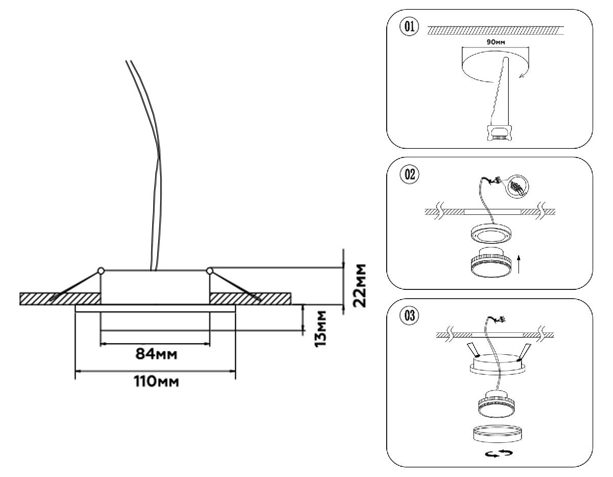 Диаметр врезного отверстия, мм | 90 |